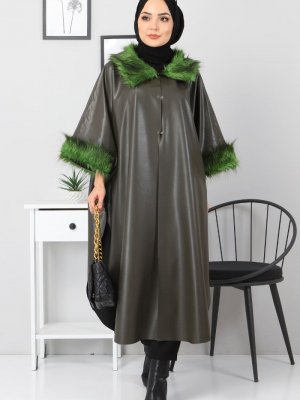 Tesettür Dünyası Haki Suni Deri Panço