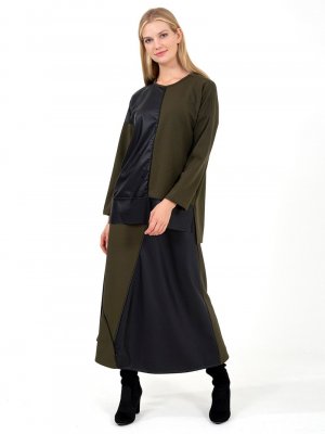 ONX10 Haki Nakış Detaylı Deri Garnili Takım