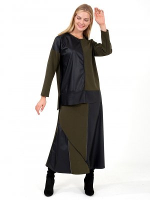 ONX10 Haki Fermuar Detaylı Deri Garnili Takım
