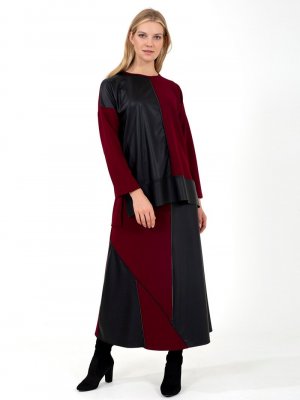 ONX10 Bordo Fermuar Detaylı Deri Garnili Takım