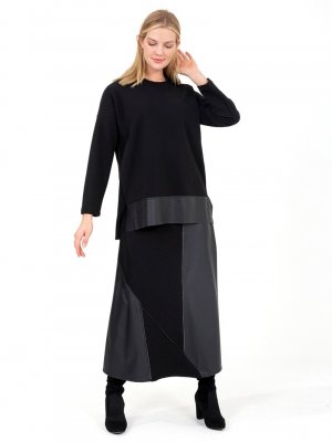 ONX10 Siyah Fermuar Detaylı Deri Garnili Takım