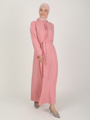 Ziwoman Pembe Fırfır Detaylı Elbise