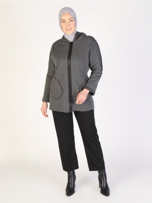 Lavien Gri Kapüşonlu Kap