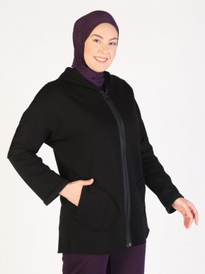Lavien Siyah Kapüşonlu Kap