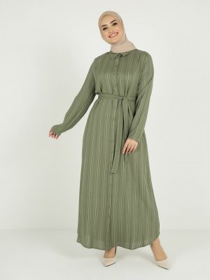 Tavin Yeşil Kuşaklı Gizli Patlı Gömlek Elbise