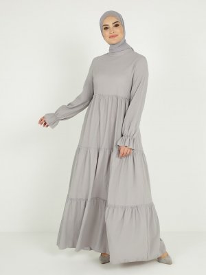 Tavin Gri Hakim Yaka Kat Detaylı Elbise