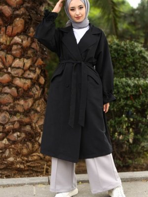 GİZCE Borna Siyah Trençkot