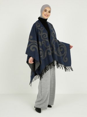 Tavin Antrasit Mavi Çift Yönlü Püsküllü Panço