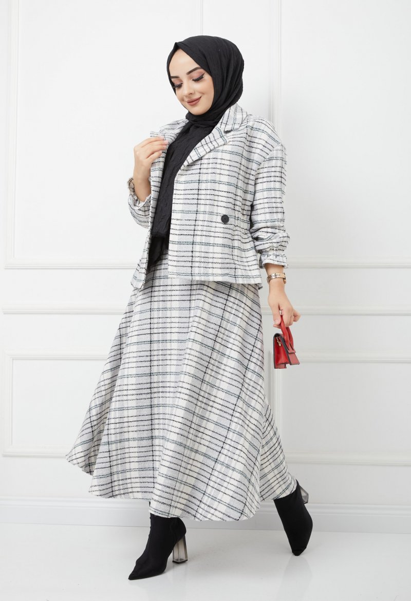 Tuba Mutioğlu Ekose Etek Ceket Takım