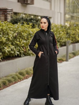 Topless Siyah Önden Fermuarlı Kapüşonlu Spor Elbise