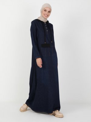 Ginezza Siyah Kapüşonlu Kot Elbise