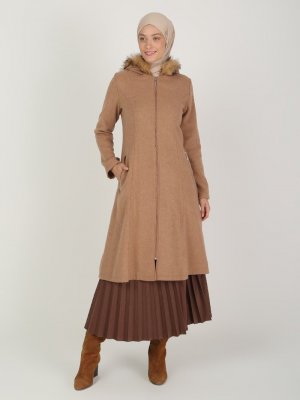 BÜRÜN Vizon Kapüşonu Kürk Detaylı Kaban