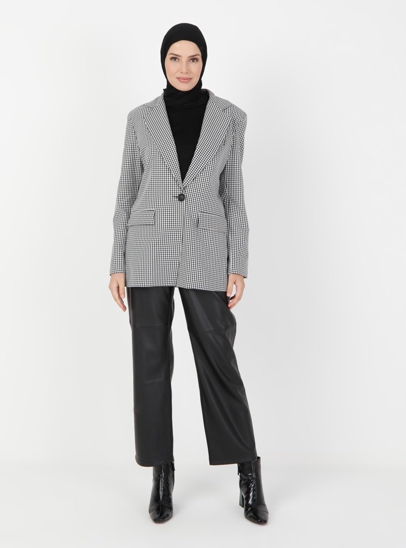İroni Siyah Pötikare Blazer Ceket