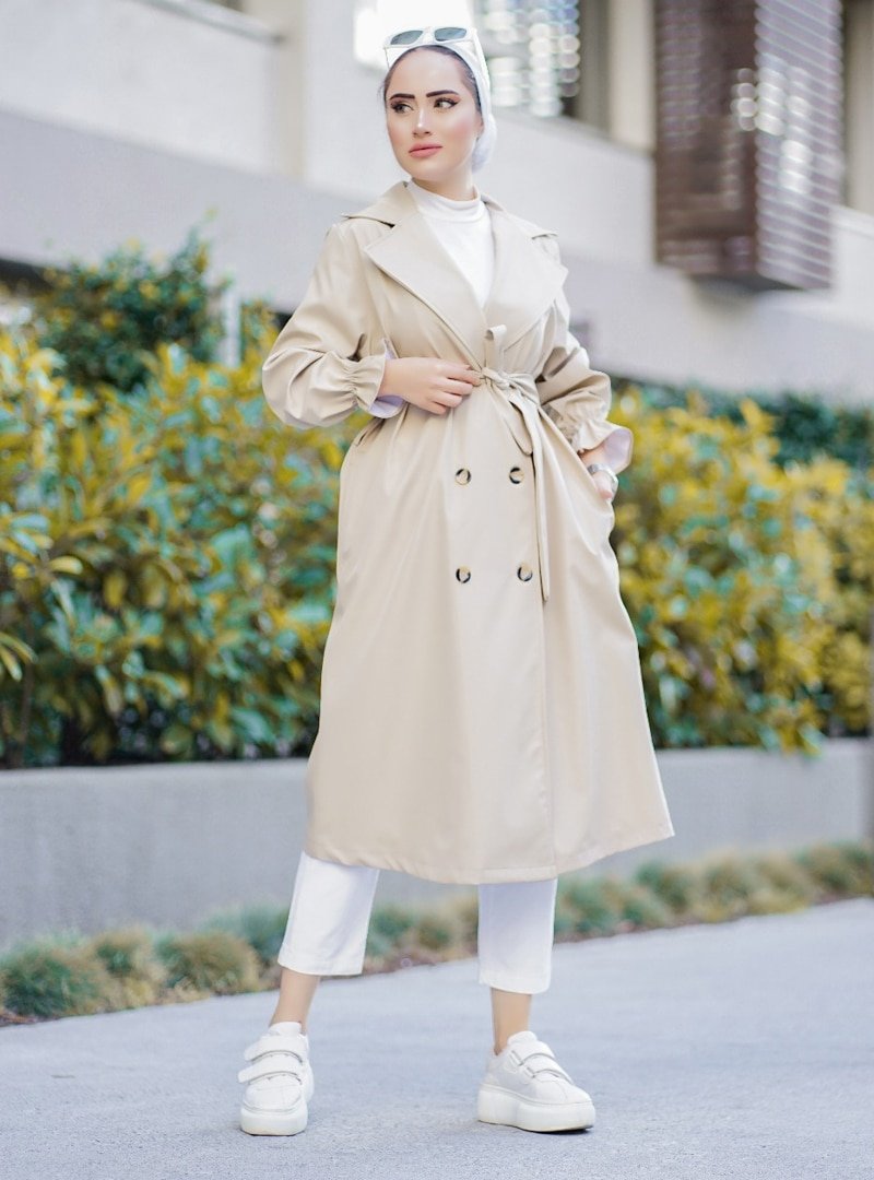 Topless Taş Kolu Lastik Detaylı Trençkot