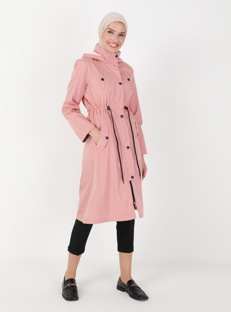 BÜRÜN Gül Kapüşonlu Boydan Fermuarlı Kap