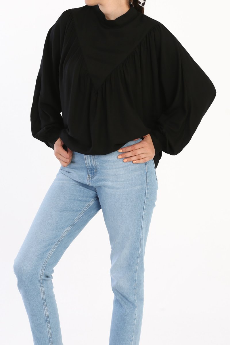Allday Siyah Büzgülü Salaş Viskon Bluz