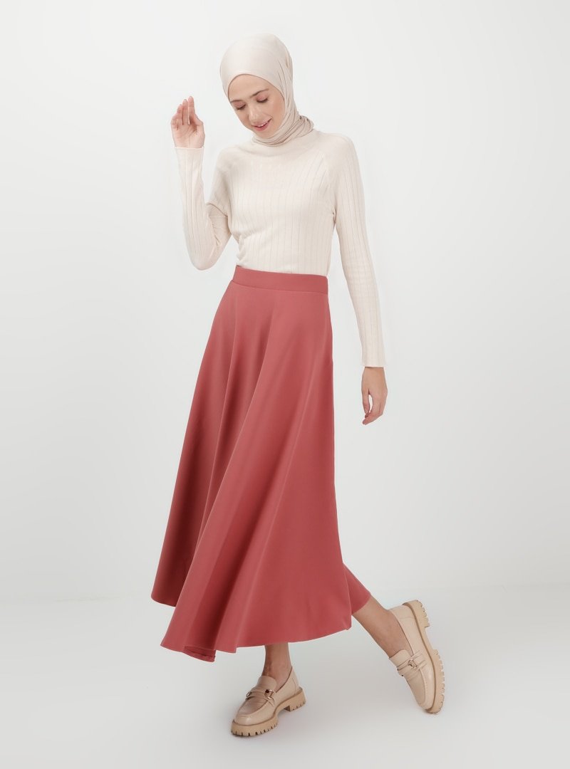 ONX10 Gül Kurusu Beli Lastikli Etek