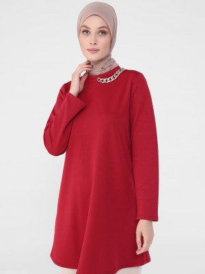 Refka Bordo Yakası Zincir Detaylı Scuba Sweatshirt