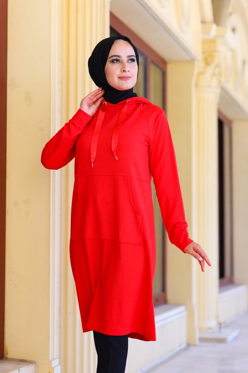 Moylin Kırmızı Reglan Kol Uzun Tunik