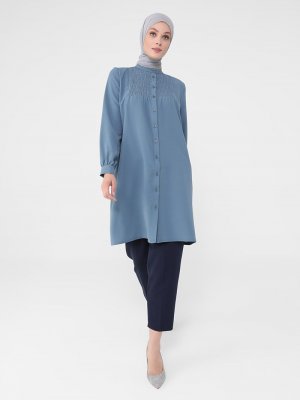 Refka Açık Petrol Gipeli Boydan Düğmeli Tunik
