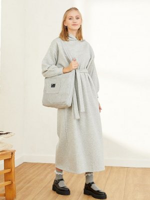 Ceylan Otantik Gri İplik Kapüşonlu Sweat Elbise