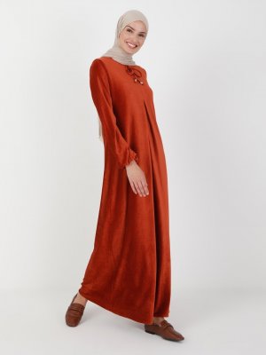 Ginezza Kiremit Kol Uçları Lastikli Elbise