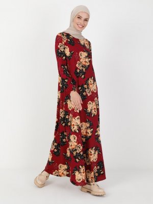 ECESUN Fuşya Çiçek Desenli Elbise