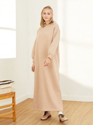 Ceylan Otantik Vizon İplik Kapüşonlu Sweat Elbise