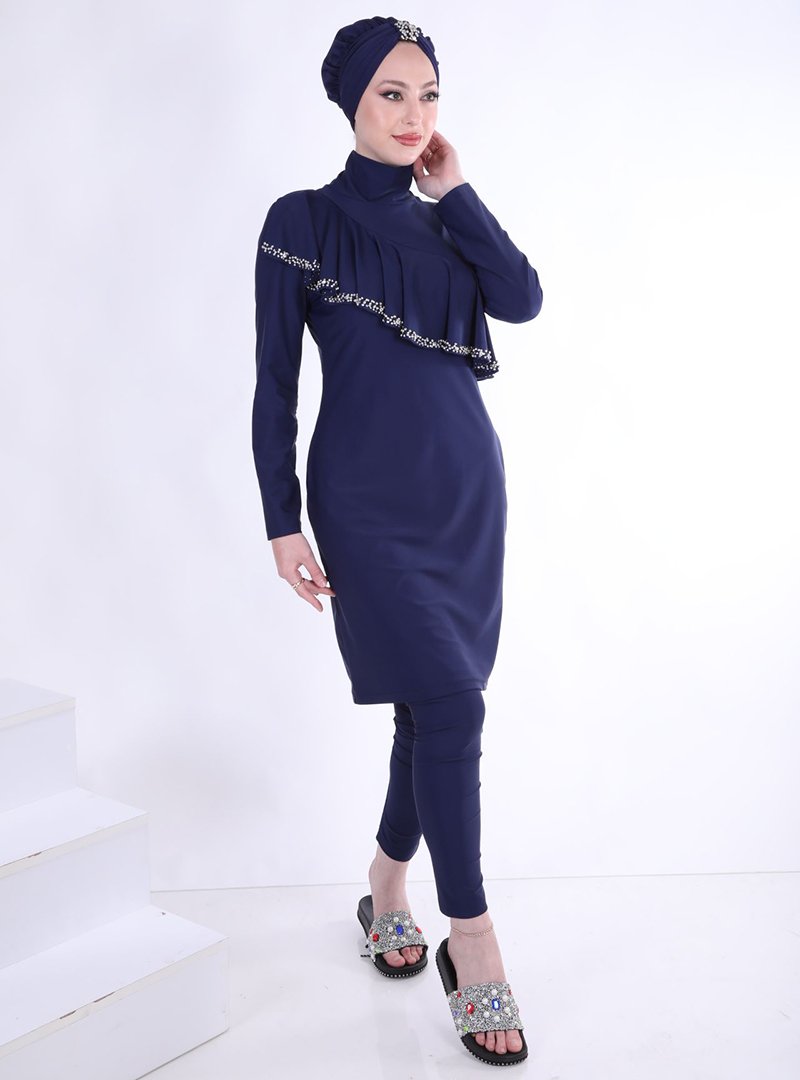 Ns Tasarım Tesettür Mayo Lacivert Allerli Mayo Takım