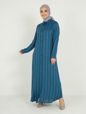 Tavin Mavi Kuşaklı Gizli Patlı Gömlek Elbise