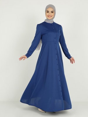 Tavin İndigo Düğme Detaylı Elbise