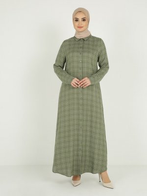 Tavin Yeşil Kuşaklı Ekose Desenli Elbise