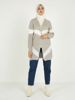 Tavin Gri Renk Bloklu Triko Hırka