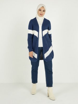 Tavin İndigo Renk Bloklu Triko Hırka