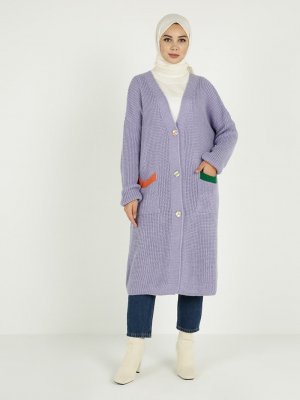 Tavin Lila Cep Detaylı Triko Hırka