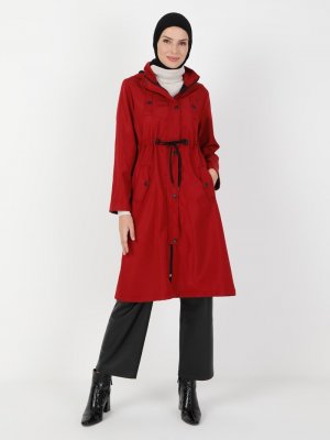 BÜRÜN Bordo Kapüşonlu Boydan Fermuarlı Kap