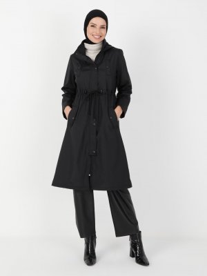 BÜRÜN Siyah Kapüşonlu Boydan Fermuarlı Kap