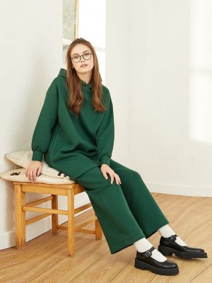 Ceylan Otantik Yeşil Üç İplik Kapüşonlu Sweatshirt & Pantolon İkili Takım