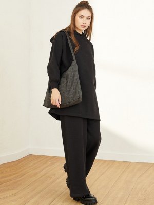 Ceylan Otantik Siyah Üç İplik Kapüşonlu Sweatshirt & Pantolon İkili Takım