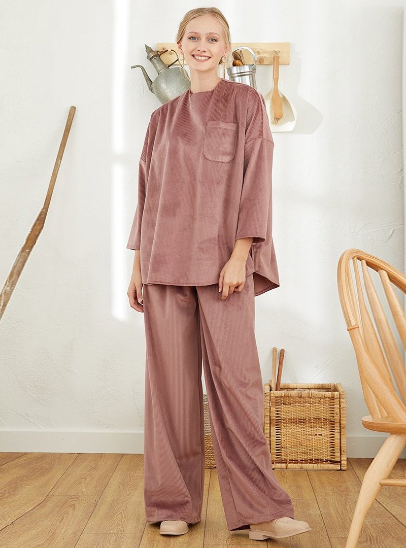 Ceylan Otantik Gül Kurusu Kadife Salaş Takım
