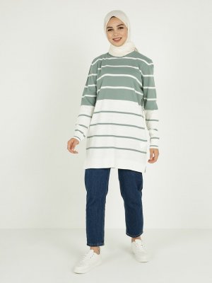 Tavin Çağla Bisiklet Yaka Çizgi Detaylı 80cm Triko Tunik