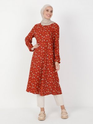 ECESUN Kiremit Çiçek Desenli Tunik
