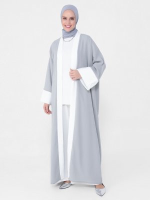 Refka Gri Ekru İki Renkli Aerobin Ferace Kimono