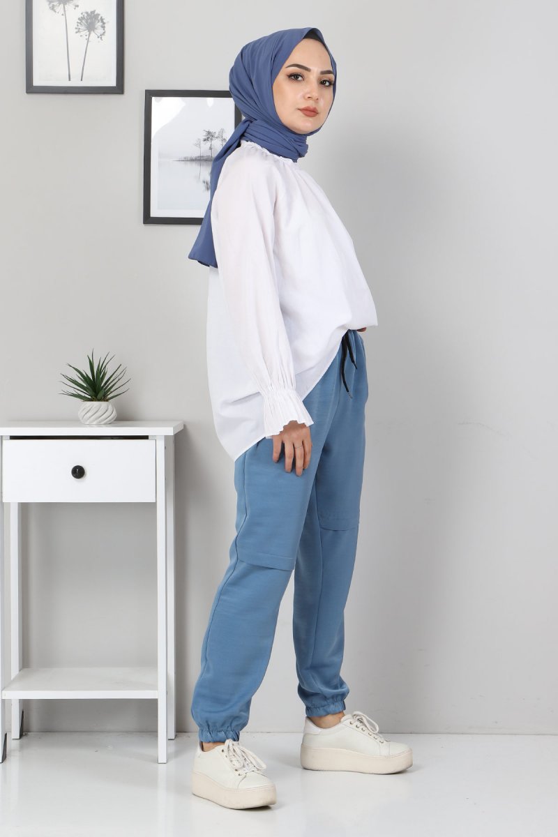 MISSVALLE Mavi Yazı Detaylı Lastikli Pantolon