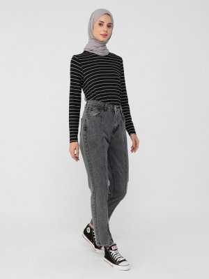 Benin Gri Doğal Kumaşlı Paçası Yırtmaçlı Kot Pantolon