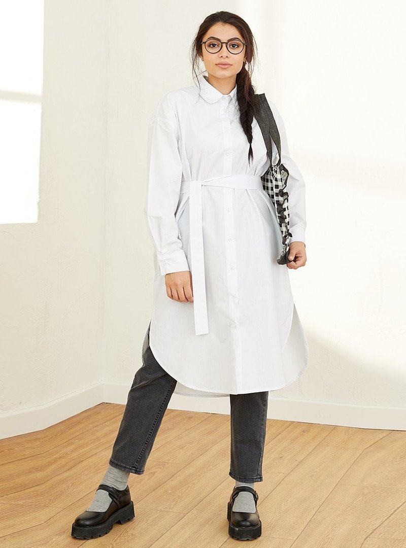 Ceylan Otantik Beyaz Kuşaklı Gömlek Tunik