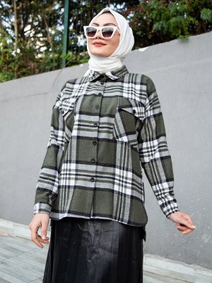 Sevit-Li Haki Ekose Desenli Gömlek