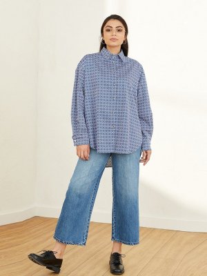 Ceylan Otantik Mavi Baklava Desenli Gömlek Tunik