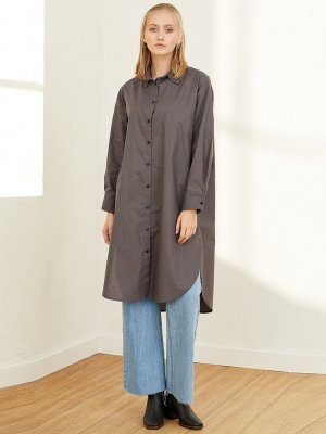 Ceylan Otantik Gri Kuşaklı Gömlek Tunik