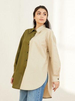 Ceylan Otantik Yeşil Vizon İki Renkli Gömlek Tunik